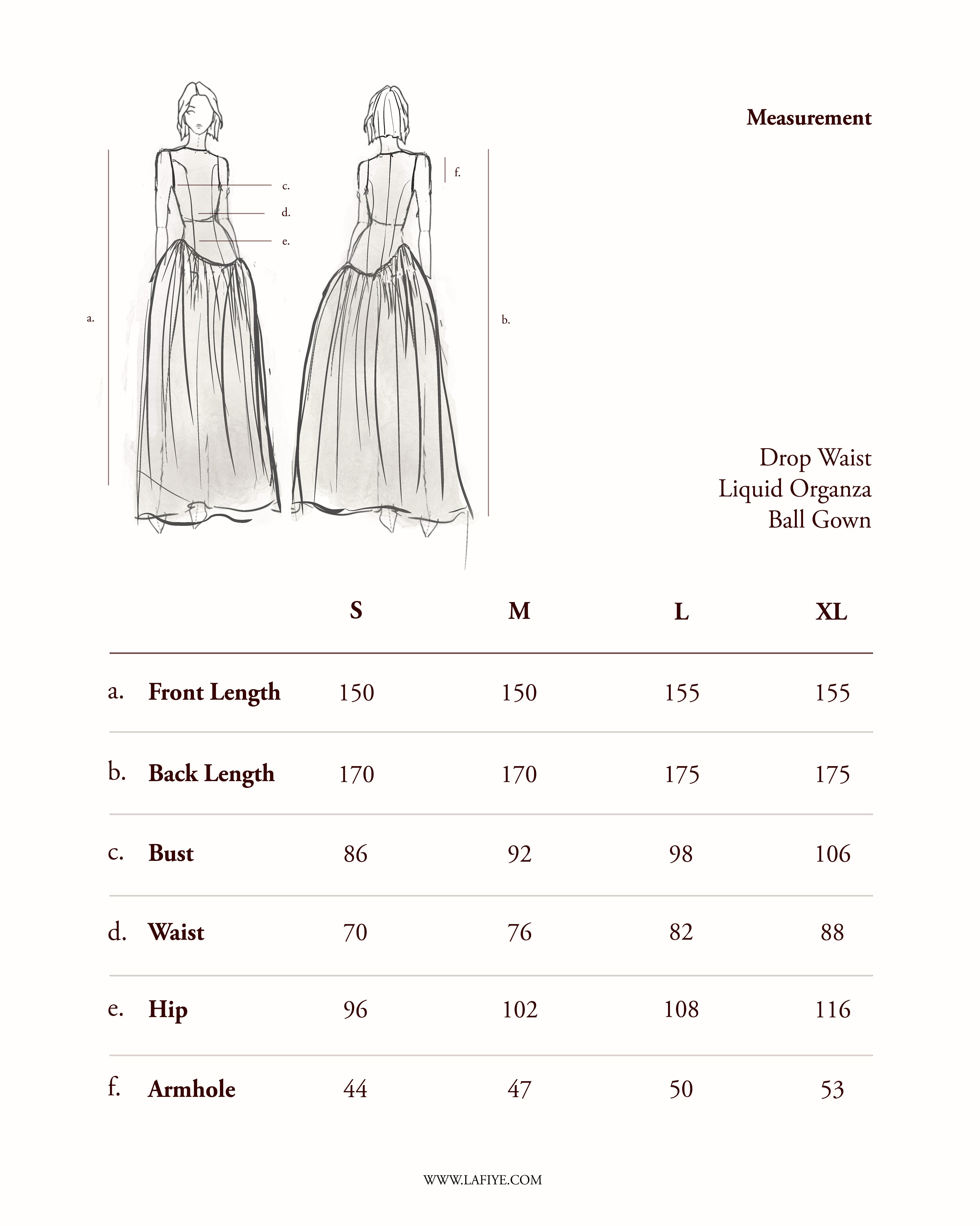 Crafted in Liquid Organza for weightless movement, this gown descends into a voluminous skirt from a dropped waistline, evoking subtle grandeur. Fine gathered detailing and seamline accents defining the torso, sculpting form while retaining softness. A gown of light, space, and shape. Majestic yet restrained, best paired with the Nue Broderie Liquid Organza Sleeve Mantle for an ethereal layered silhouette.